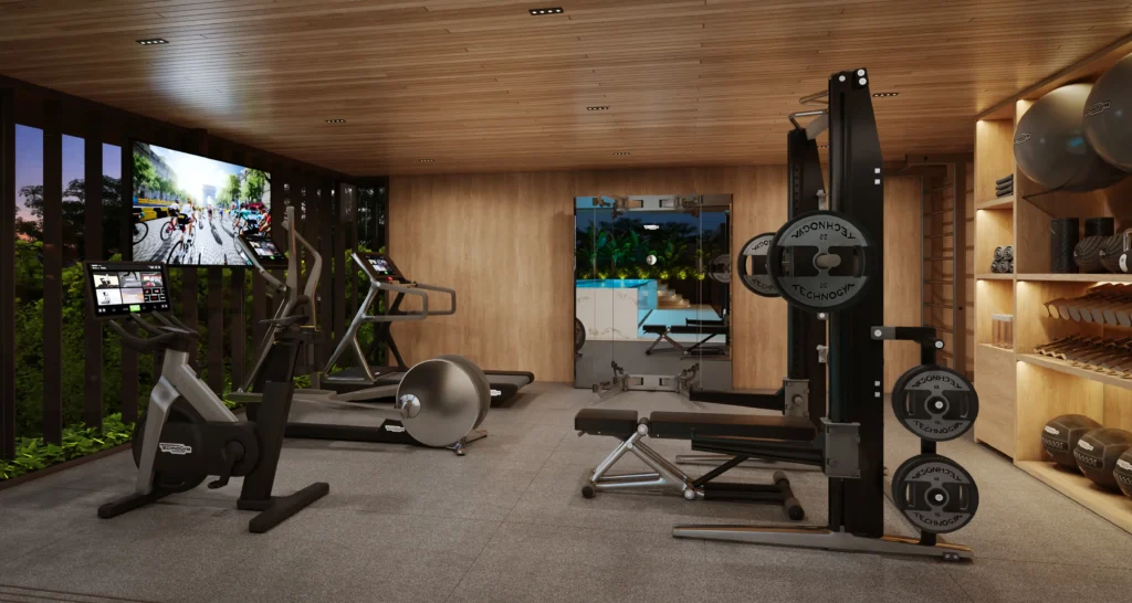 Perspectiva ilustrativa do Rooftop W: academia